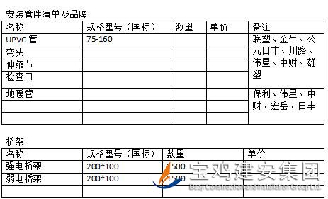招标公告 由宝鸡建安集团股份有限公司第十五项目部承建的中梁百悦荟广场项目,现面向社会公开进行安装管材、桥架招标,望有相应资质的单位踊跃报名参加。 一、工程概况 中梁百悦荟广场项目位于西安沣东新城能源金贸区金融一路以东,丰业路以南沣泾大道以西,石化大道以北,该项目建筑面积111148.38平方米。 二、招标内容 中梁百悦荟广场项目1#、2#、3#、4#楼及地下车库安装管材及电缆桥架供应。(安装管材清单及品牌详见后附件) 三、报名应提供资料 1、营业执照 2、税务登记证 3、法人授权委托书 4、近三年来承担的类似材料供应合同等相关资料原件及复印件。 5、报名时应缴纳投标保证金5000元,开标后中标单位将转为履约保证金,未中标单位的投标保证金将在开标七天后无息返还,已报名而未参加开标的单位不予退还。 四、报名时间: 2026年4月14日至4月16日下午五时 五、报名地点 宝鸡建安集团股份有限公司第十五项目部(建安大厦22楼) 六、报名联系人: 付工 0917-2790884